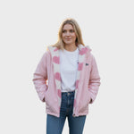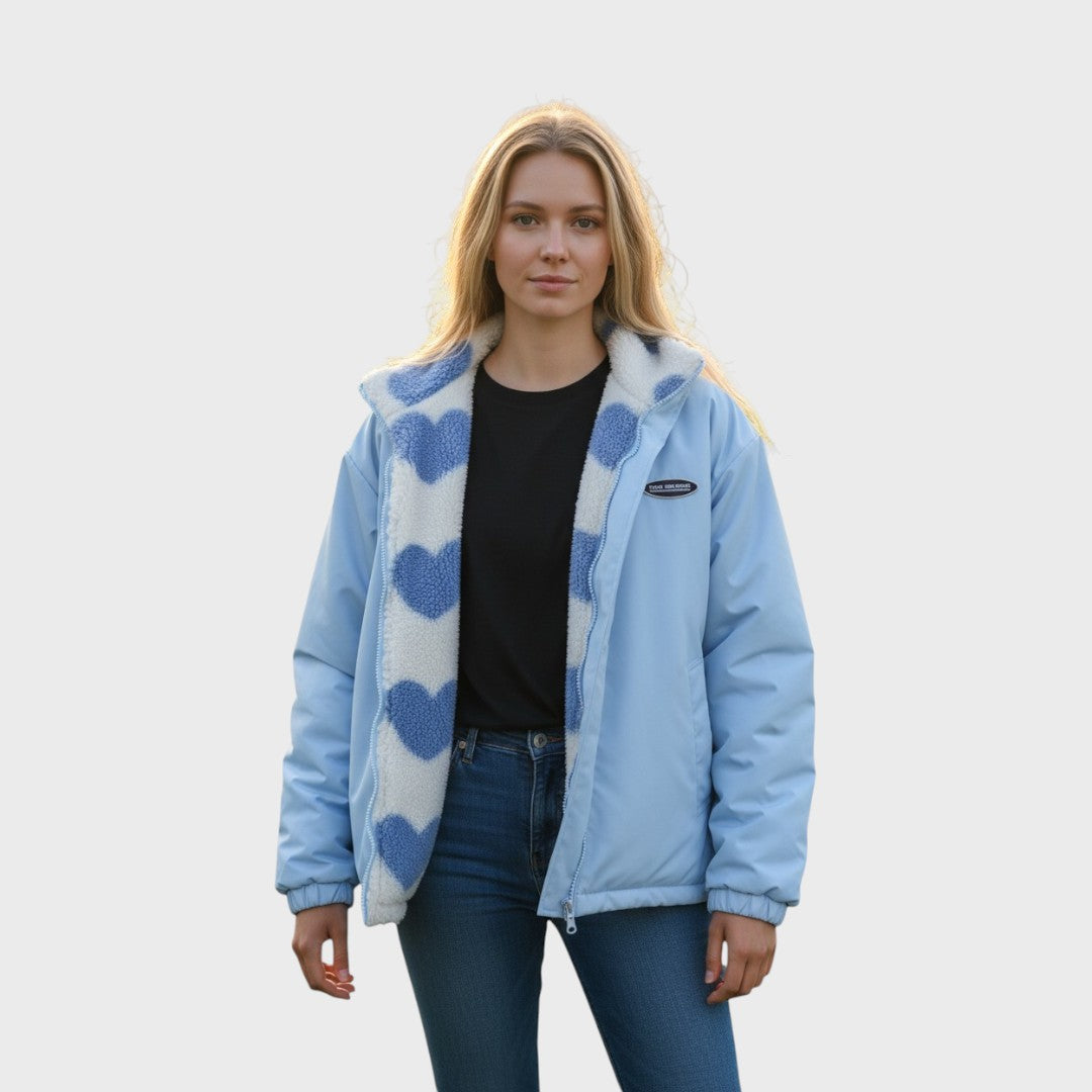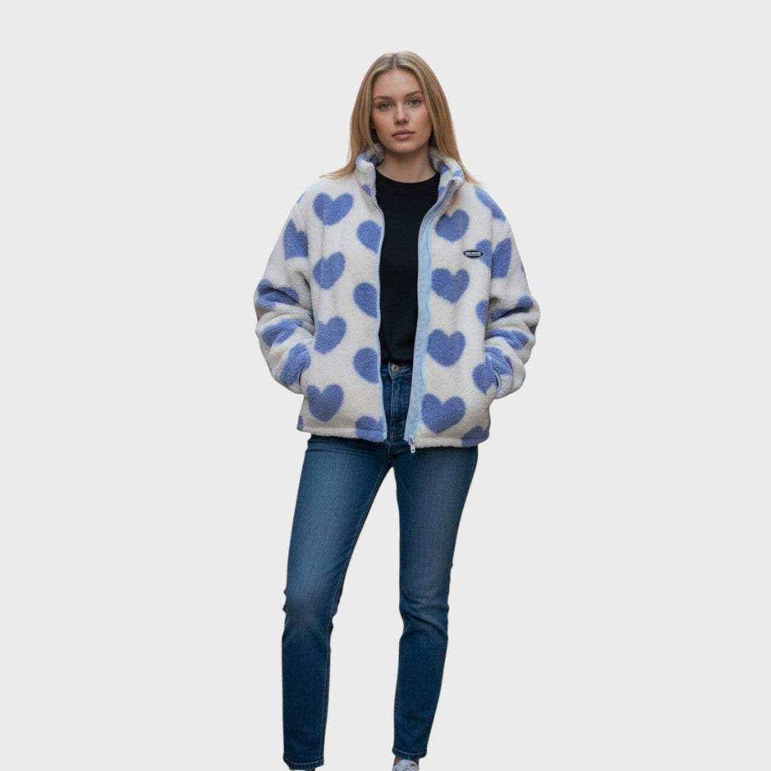 Tento kabát je dokonalým spojením pohodlí a stylu. Jeho hebká tkanina příjemně zahřeje a moderní vzor se srdíčky přidává na šarmu i originalitě. Ideální pro ženy, které milují cítit se dobře a zároveň vyjadřovat svou osobnost prostřednictvím módy. Neodolatelný kousek, který zahřeje i rozzáří váš outfit.