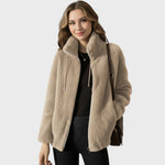 Model Mila je definicí absolutního pohodlí. Tato bunda z ultra-měkkého materiálu s texturou umělé kožešiny ("faux fur") je navržena tak, aby vám poskytla pocit měkkého objetí po celý den. Její jemný béžový odstín a minimalistický střih z ní dělají univerzální kousek, který dodá nádech luxusu i obyčejnému outfitu s džíny.