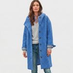 Olivia | Modrý kabát s bouclé texturou