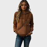 Model Mila je důkazem, že pohodlí nemusí být nudné. Tato mikina s kapucí kombinuje různé textury a barvy – horní část v tmavém úpletu a spodní část v šedé melanži – čímž vytváří moderní a uvolněný vzhled. Výrazné detaily, jako jsou silné stahovací šňůrky a viditelné prošívání, jí dodávají rustikální šarm. Je to ten pravý kousek pro dny, kdy se chcete cítit "cool" bez jakékoliv námahy.