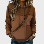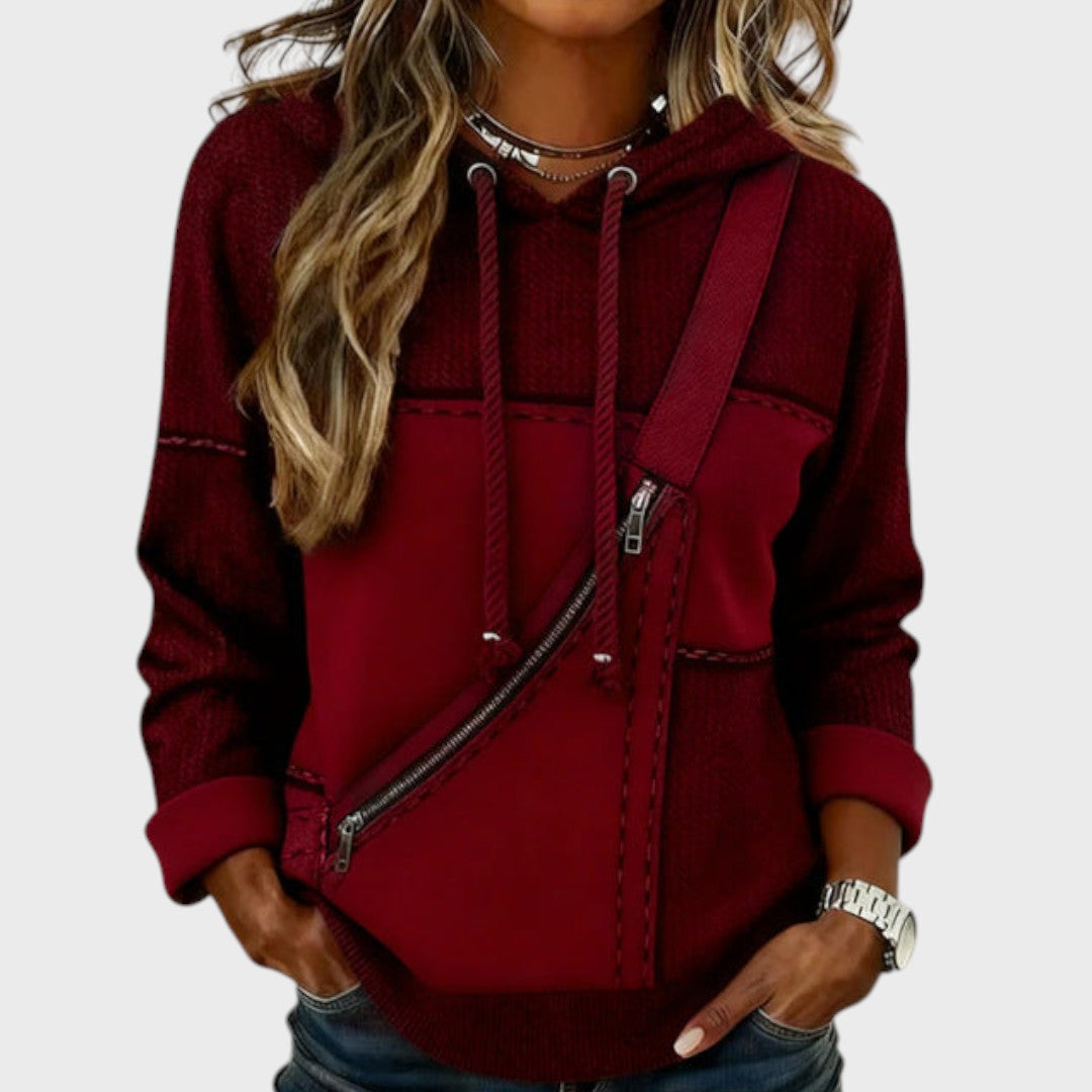 Funkční prvek: Šikmý zip na přední straně není jen na ozdobu, ale dodává mikině "motorkářský" nádech a strukturu.