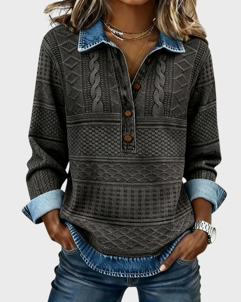 Elise | Halenka s efektem pleteniny a džínovými detaily