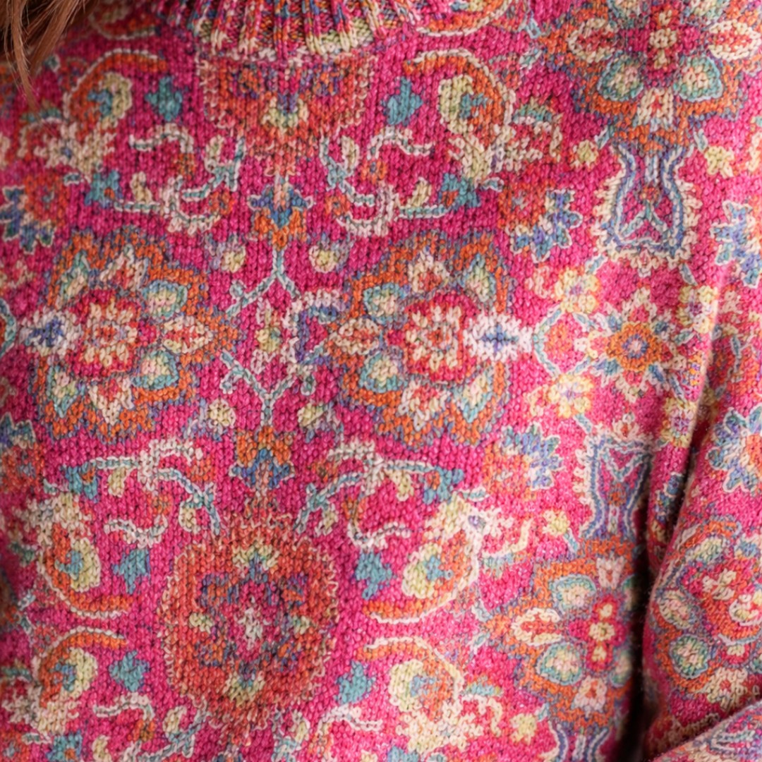 Svetr Eline je ideální volbou pro ženy, které chtějí spojit výrazný elegantní vzhled s maximálním pohodlím. Měkký materiál je příjemný na dotek, zatímco nadčasový střih a dekorativní vzor dodávají outfitu osobitý charakter. Skvělý kousek pro každodenní nošení i stylové kombinace do města.