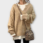 Přesně veliký pletený svetr s copánkovým vzorem