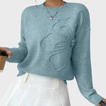 Tento pletený kousek se cítí jako první teplé ráno po dlouhé zimě—jemný, lákavý a plný tiché krásy. Květinový kontur se jemně zvedá z látky, vykreslující kvetení, které se zdá být živé ve své klidnosti. Obalený v tomto pleteném kousku cítíte jemné teplo—teplé, upřímné a nezaměnitelně ženské.