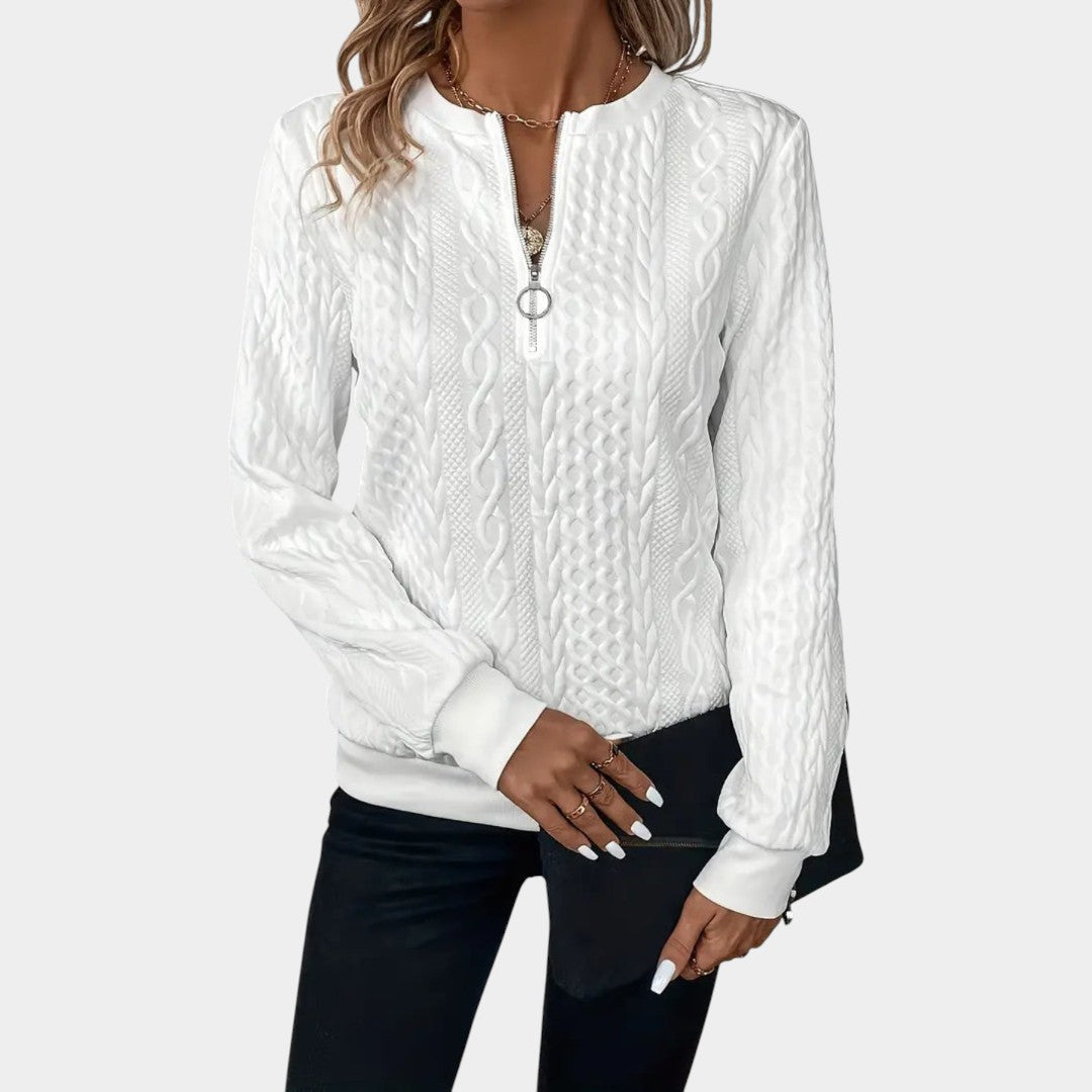 Amálie – Dámský svetr s copánkovým vzorem a zipem